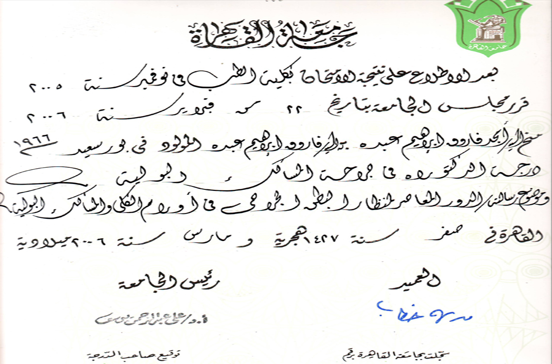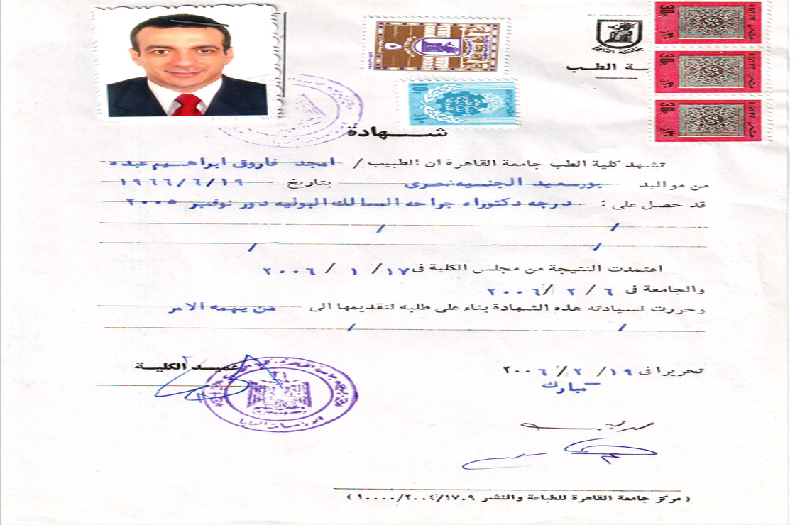 M.B., B.Ch, Cairo University, Egypt: 100%