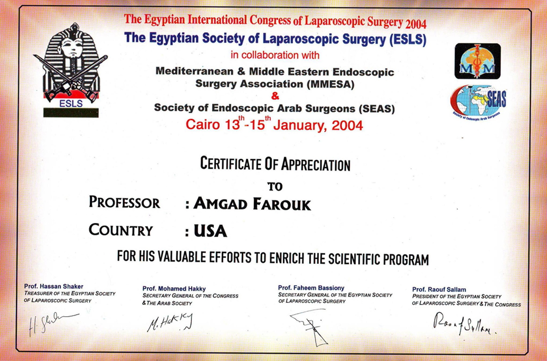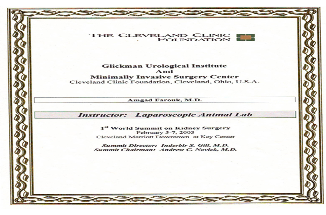 Cleveland Clinic Foundation Fellowship in advanced Laparoscopy, USA:100%